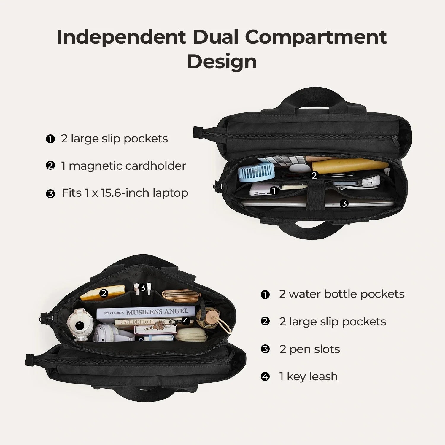 I absolutely love my 17-inch laptop bag! It’s incredibly roomy and keeps me perfectly organized—from my laptop and charger to notebooks, files, and personal items. The compartments are thoughtfully designed, and the zipper closure gives me peace of mind by keeping everything secure and private.